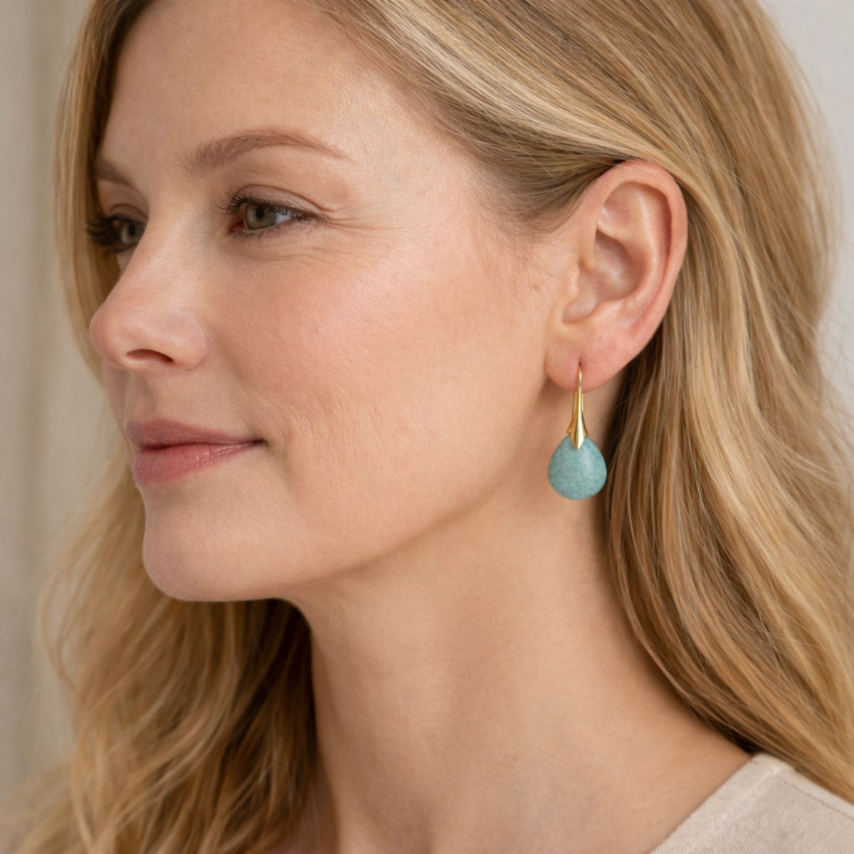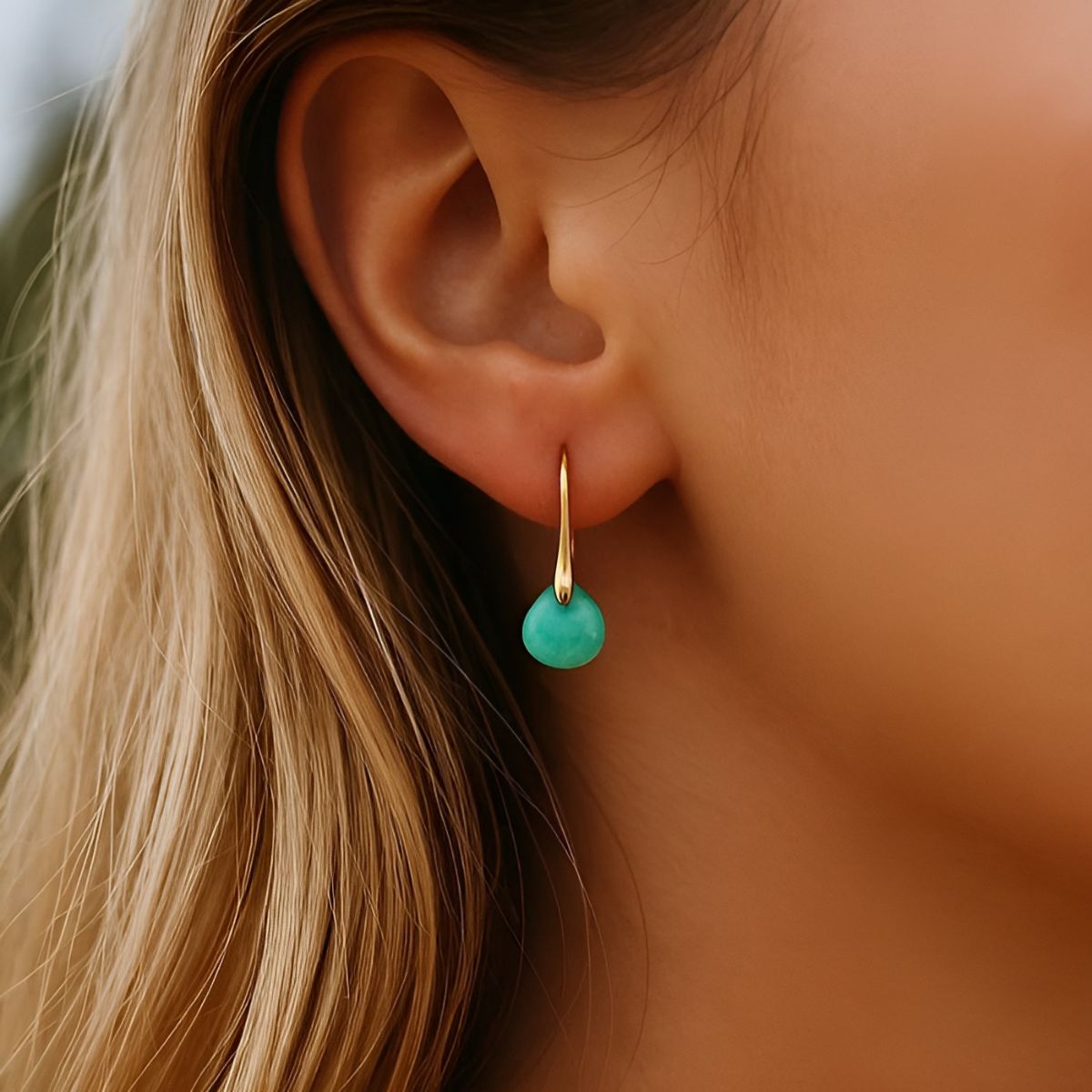 This is more than a pair of earrings; it’s a touch of natural beauty, soft color, and everyday sophistication. The Aveline™ | Amazonite Drop Earrings feature genuine amazonite in calming blue-green tones, designed to subtly frame your face and elevate your look. Whether you're dressing up or keeping it simple, these earrings add refined color without overpowering your style.