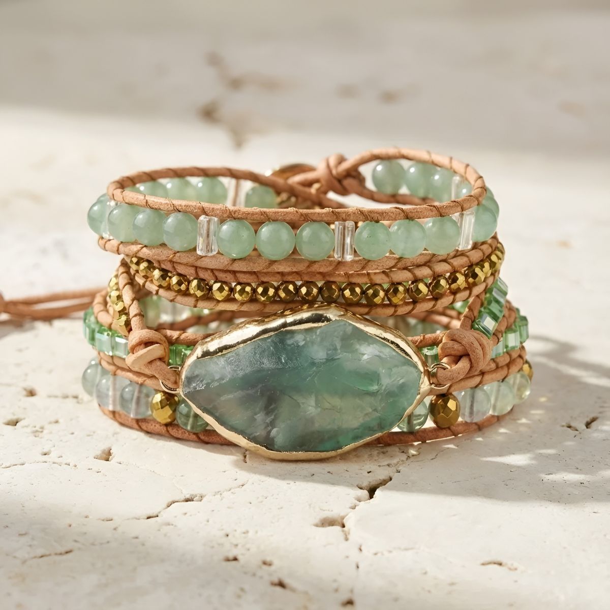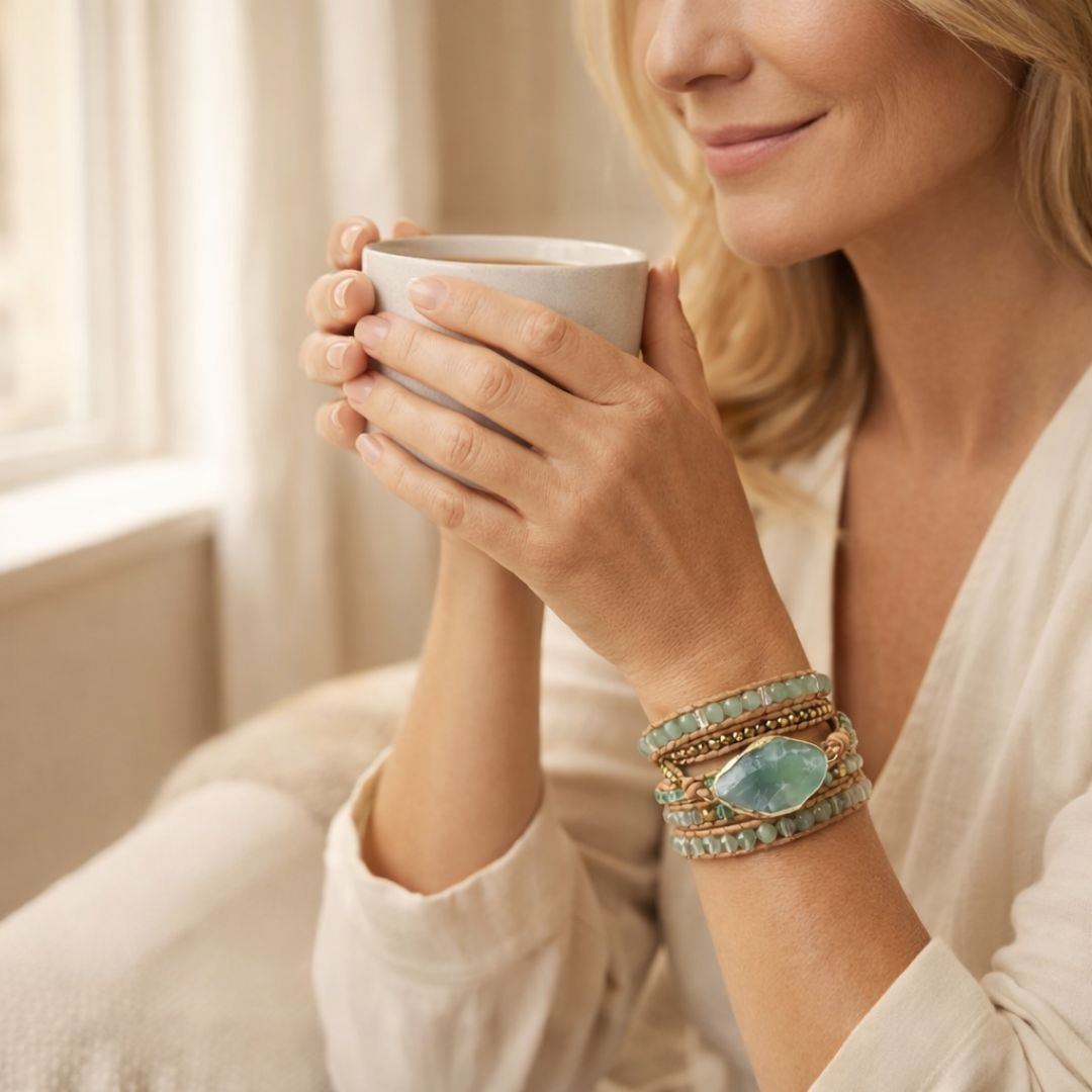 This is more than a bracelet, it’s a daily reminder of strength, positive energy, and inner calm you can carry with you. The Averra™ | Optimism Energy Wrap Bracelet is designed with natural green fluorite and aventurine stones; each known for supporting emotional balance and uplifting your spirit. Whether life throws challenges your way or you simply want to stay centered and peaceful, this piece wraps your wrist in beauty and meaning you feel every day.